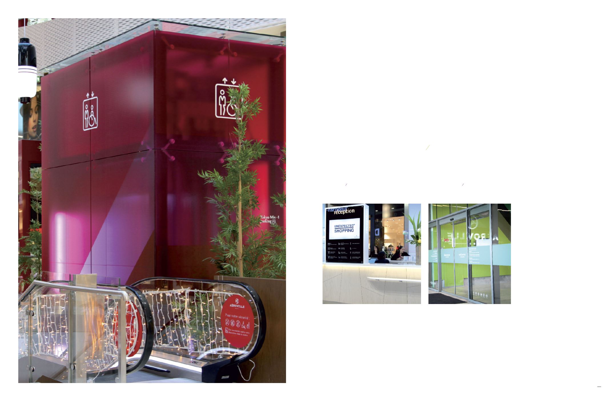 - Habillage des ascenseurs en vinyl transparent imprimé et consignes de sécurité escalators